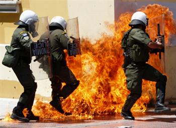 Em Atenas - 10.000 pessoas e Salónica - nesta última cidade reuniram-se 5.000 manifestantes, mais do que todos os "vermelhos de Ratchaprasong" juntos -, a policia desbaratou a concentração convocada pelos sindicatos e por grupos comunistas. Bastonadas, prisões, correrias e abundante utilização de gás lacrimogéneo. Imagine-se o que o inefável Papandreu faria se em vez dos gritos e ataques às montras, os "sediciosos"tivessem erguido barricadas, disparado metralhadoras e foguetes RPG.