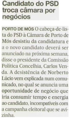 As consequências políticas que deste equívoco resultarem só poderão ser imputadas a quem, precipitadamente, patrocinou a entrada do P.P.M. na dita coligação.